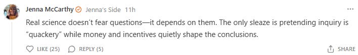 The fact that it isn’t—that the offer instead inspires lectures about decorum, warnings about misinformation, and a sudden allergy to public scrutiny—suggests that this isn’t about protecting the integrity of the scientific process. It’s about protecting the status quo. And the status quo, apparently, cannot survive a critical audience.