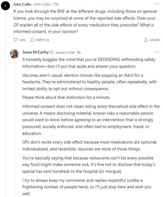 It's startling to see the quality of 'debate' on Paul Offit's substack.