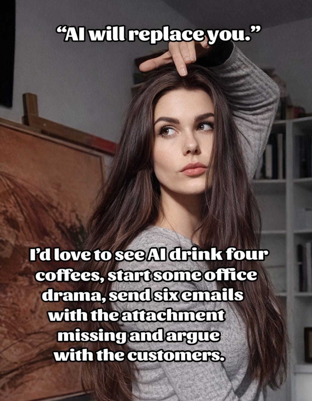 People, you may have noticed, are quickly becoming obsolete. (*But only in the workforce sense. They still need us to consume all of their AI-generated crap! Hahahaha, except now we can’t afford it because you took our jobs. Way to go, guys!) We’ve seen it already with self-driving cars stealing Uber drivers’ rides and AI support agents fielding customer calls and digital image generators replacing graphic artists. There are Substacks I used to read and savor that are now clearly being written by bots. My tender, creative heart aches.