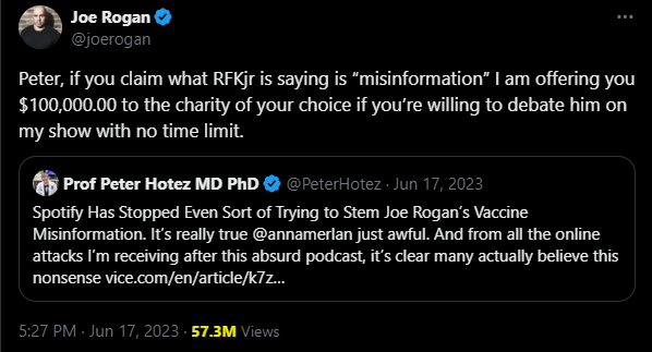 “The health sector can't solve this on its own,” Hotez bemoaned in a recent interview. “We're going to have to bring in Homeland Security, Commerce Department, Justice Department, to help us understand how to do this. I met with doctor Tedros last month in Geneva, the [WHO] director general to say, ‘I don't know that the World Health Organization can solve this on our own. We need the other United Nations Agencies, NATO…’ This is a security problem because it's no longer a theoretical construct or some arcane academic exercise. Two hundred thousand Americans died because of anti-vaccine aggression, anti-science aggression. And so this is now a lethal force. And now I feel as a pediatric vaccine scientist, just as it's important for me to make new vaccines to save lives, the other side of saving lives is countering this anti-vaccine aggression.”