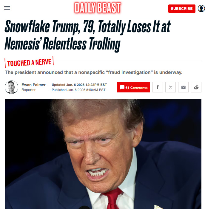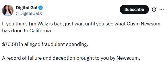 The Trump investigation announcement isn’t just POTUS being provocative. The same guy—Nick Shirley—who exposed Minnesota’s latest financial tomfoolery has aimed his magnifying glass at the left coast. Even worse (better?), California’s own State Auditor has effectively slapped a “High-Risk” warning label on Newsom’s administration, naming the governor and multiple agencies as ongoing liabilities. After California received roughly $285 billion in federal COVID funds, the Auditor concluded (in a report dubbed CALIFRAUDIA hahahahaha) that the state’s financial management, infrastructure oversight, and accountability mechanisms were so compromised they now qualify as a statewide hazard. Translation: the referee is wearing the same jersey as the home team—and he still threw the flag.