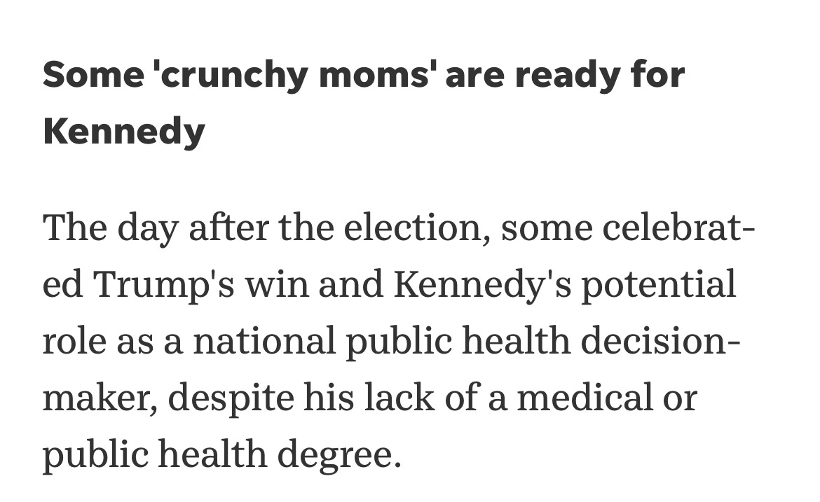 RFKjr helped me shed my lingering respect for the medical industry by his book on Fauci. There's no way to read that book and not conclude that the emperor has no clothes, and that Fauci should be in prison. I think Trump got played by Fauci, and now with (God-willing) Kennedy on board nothing like that will happen this time around.