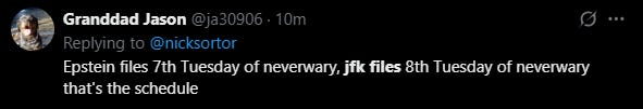 Obviously, it’s going to take intrepid internet sleuths a minute to unearth any meaningful dirt. Folks posting “proof,” for example, that prior to his death, JFK Jr. called Biden a traitor, were quickly shot down with reader-added context to the previously-released paper. One post will insist, “After reading this I am now 100% sure the Israeli government killed JFK,” and the very next alludes to undeniable evidence that “a small group within the CIA was responsible.”