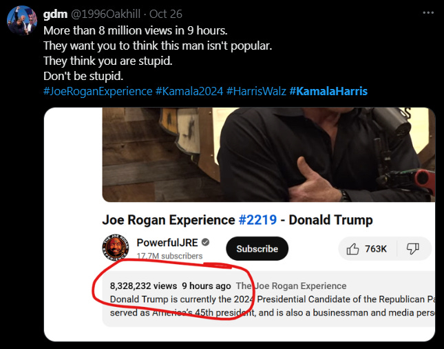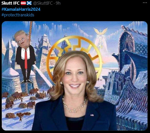 #TooBigToRig is currently trending on X, and let’s just say you don’t see a lot of I’m-With-Her rings in the posters’ bios. When I dared to search the top Harris hashtag—the especially clever #KalamaHarris, good God the left really can’t meme—ninety-nine out of a hundred of them looked like this (and yes I realize X is overwhelmingly conservative, on account of that free speech business that liberals loathe):