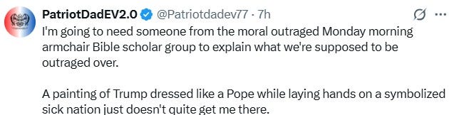 When a massive chunk of the mediasphere imploded over the “offensive and blasphemous image,” alert netizens were quick to point out that the post was originally made by special envoy Nick Adams, who posted it over two months ago with the caption “America has been sick for a long time. President Trump is healing this nation.”