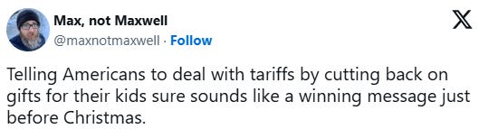 In other words, Trump was acknowledging that there will be tariff trade-offs, while reminding Americans that domestic production is critical to prosperity, and that national security really should outrank another Polly Pocket.