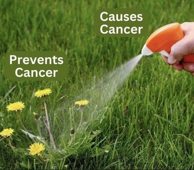 MAHA diehards are insisting that there’s no plausible deniability here. No one can ever come back and claim they were “being poorly advised” or were “kept in the dark about the dangers.” In 2020, the Environmental Protection Agency published results of an evaluation that found glyphosate is likely to injure or kill 93% of endangered species. (That is not a typo.) It’s also wide-out-in-the-open that the supposed “safety study” that “proved glyphosate was unequivocally safe” and “posed no risk to humans or animals”—the one administrations relied on for decades to greenlight unfettered use of the endocrine-disrupting death dust—was written by Monsanto.
