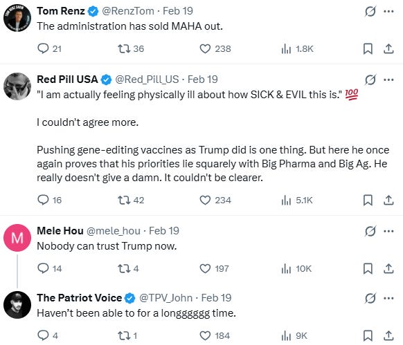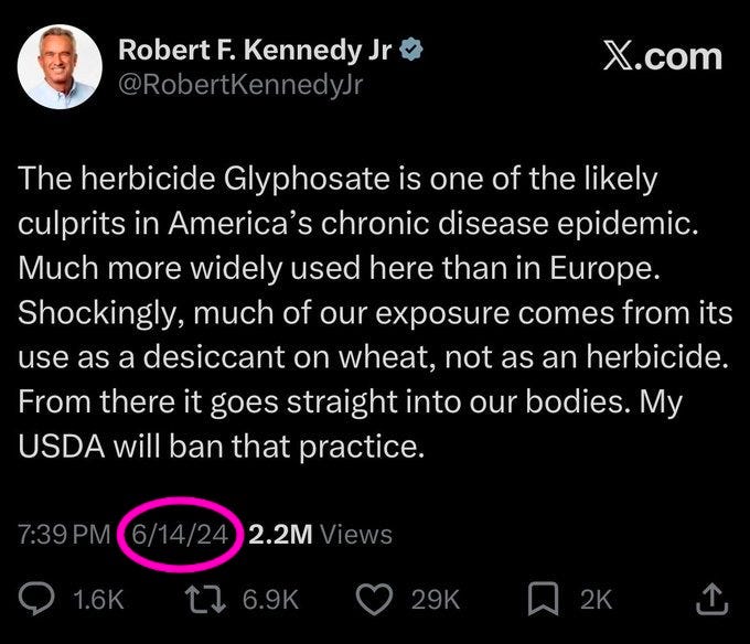 Yes, we need a better path forward. Absolutely, the system is corrupted. No questions asked, glyphosate is a disaster. But—just like with vaccines—rapid, blunt-force change can break more than it fixes. Sometimes the revolution has to happen in slow motion, or it risks toppling the whole infrastructure. And sometimes the first step is just dragging a topic into the spotlight—getting people fired up and furious. Think about it: Who was talking about glyphosate a month ago? Now it’s basically the national group chat.