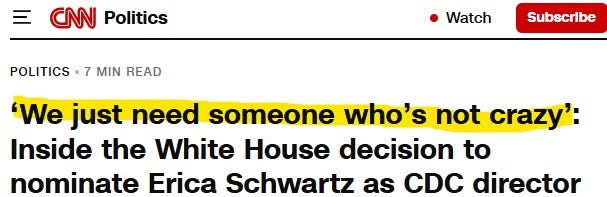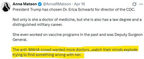 The latest letdown: Trump tapping Erica “Mandate Queen” Schwartz to run the CDC.