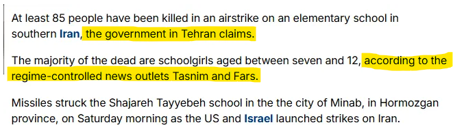 Obviously I’m not there. I can’t say unequivocally that it didn’t happen. But dying-regime wartime propaganda is a documented thing. And independent sources inside Iran are warning that the regime is manufacturing tragedy because they desperately need to reassert control after losing their supreme leader. And we all know the Western media doesn’t historically concern itself with accuracy. So the same newsrooms that ignored the Iranian government massacring protesters last month suddenly rediscovered their passion for human rights and blasted the story like it was Dewey Defeats Truman all over again. The moment they had a headline they could weaponize against Trump—one that would be sure to feed the outrage machine—it was practically obligatory.