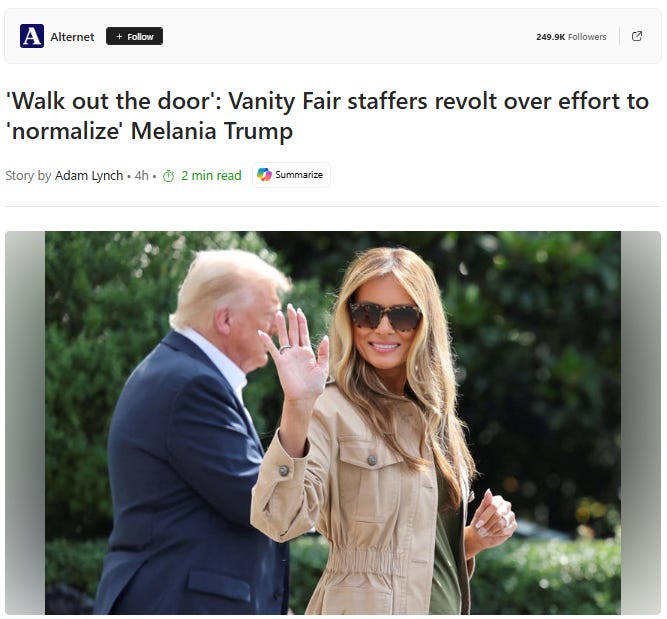 I can only say, since Melania was being snubbed by all magazines after Trump's first term, I have saved an enormous amount of $ on magazines. Haven't bought one since then
