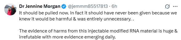 The day after Trump won the election (2.0), I had a $1,000 bet with my friend James (a lovely lad but less enlightened than us folk - a very trusting chap...) that the mRNA filth will be banned not only in the US, but in 3/5 of the 'Five Eyes' countries by the end of 2026. It looks like I am well on schedule to get my payout. And perhaps the hit to his wallet will teach James to be a bit less trusting of his establishment masters in future.