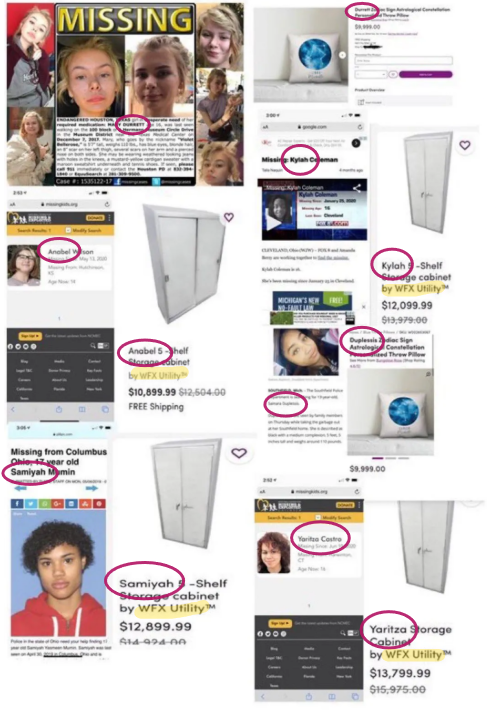 Remember back in 2020 when that weird “algorithm malfunction” made it look like Wayfair was actually trafficking missing children? People started noticing that the online megastore had listings for storage cabinets going for ten to fifteen thousand bucks—each one just coincidentally named after a child who had recently disappeared. Ten thousand dollar pillows similarly christened? “Price glitch,” Wayfair explained.