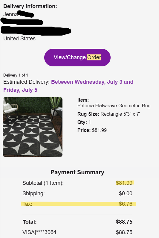 I’ve made a few Wayfair purchases in my day, so I just scanned my email for some receipts. Strangely, they all spell out precisely what I bought and they all had tax added. You know, because when you buy something legal, the government expects its cut.