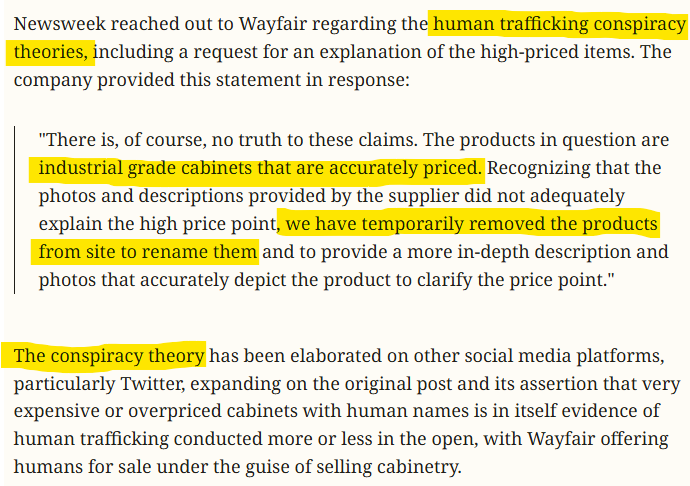 Naturally, the public had questions. And of course, the media had answers. Well, just one, to be exact: “Wayfair says it’s not true!”