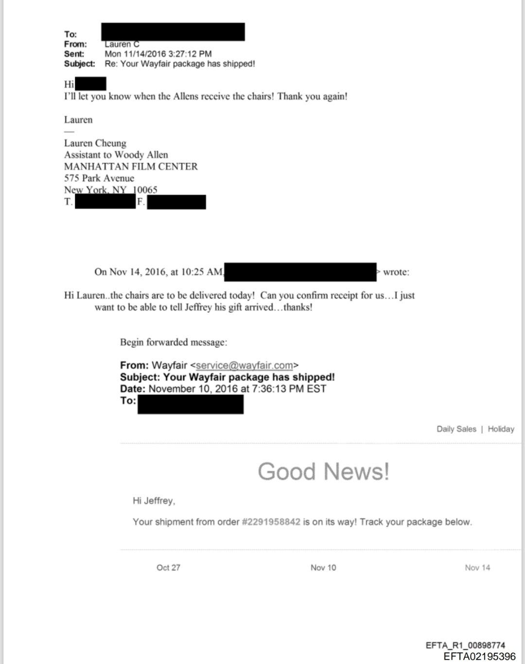 Obviously, one lightly redacted email doesn’t prove that Wayfair was somehow involved in selling children. But a man who ran an international trafficking operation orders an incredibly expensive… something… from the very brand everyone was freaking out about months later, and the official explanation is… coincidence? Really?