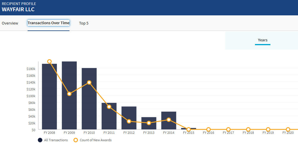 Speaking of coincidences, it seems the U.S. government was a big fan of Wayfair when Obama was president, but then as soon as Trump took office, I guess the White House found a different, better furniture vendor. Or maybe it was just, you know, some pre-DOGE budget tightening or something. No one can really say.