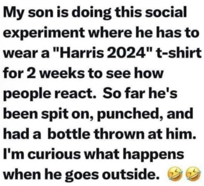 OMG, laughed out loud in the dentist waiting room about the t shirt wearing the Kamala 2024. Hilarious 😂