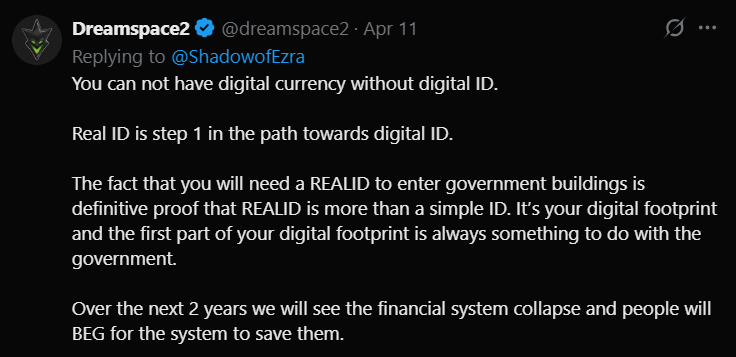 As I understand it, the real ID is your official digital ID that the government wants everyone to have so that they can start using it as the "single point to truth" to identity and monitor you. So your bank accounts, credit cards, social media accounts, phone, etc.