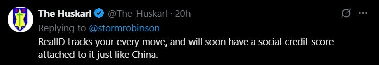 P.S. Reader Big E put together an excellent reference guide to all things Real ID-related in a nuanced Substack note, for folks seeking additional details on state requirements, alternative ID options, and more.