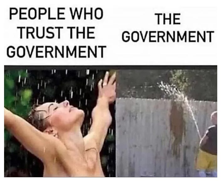 Except it’s not, because we’ve been told we must Trust the Science™. And by its very nature, questioning is antithetical to trust. When you board an airplane, you trust that the pilot is qualified and sober and not suicidal. You don’t march into the cockpit and quiz him about these things; your confidence is implicit when you buy that ticket. When you agree to pledge your undying devotion and fidelity to another person, you don’t grill them daily about their faithfulness (unless you have serious issues); you trust they’ll adhere to the legally binding terms of your marital contract. When your doctor recommends a certain medication, you [used to] believe that it would a) help alleviate your symptoms and b) not kill or maim you. After all, there are people and agencies whose purpose is to ensure both of those things are true… aren’t there?