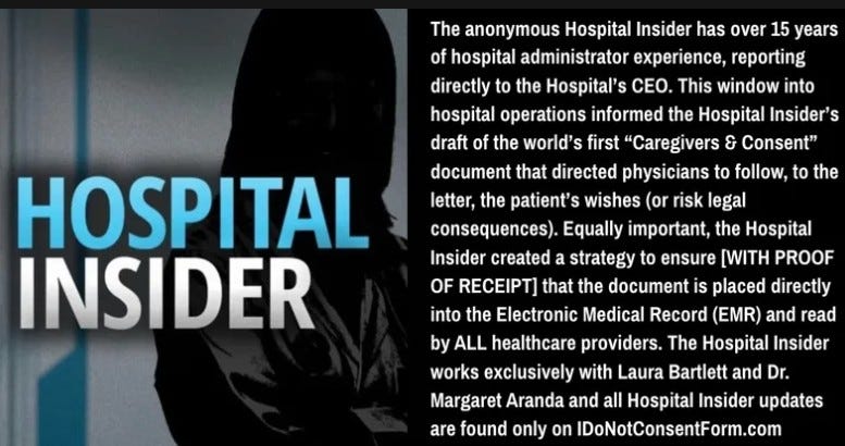 Serendipitously, Laura met a likeminded nurse/attorney who had created a document for herself to avoid getting “the lethal Covid protocol.” Since the nurse wished to remain anonymous, Laura volunteered to share her I Do Not Consent Form, turning it into a free, customizable, downloadable medical directive designed to protect patients from hospital tomfoolery.