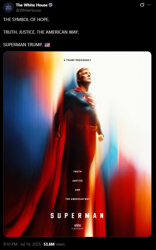 The reality is, if Trump posting a Man of Steel meme sends the media into DEFCON 1, he doesn’t even need a cape. All he needs is a smartphone, a sense of humor, and a press corps willing to churn out endless free publicity. That’s the ultimate superpower.