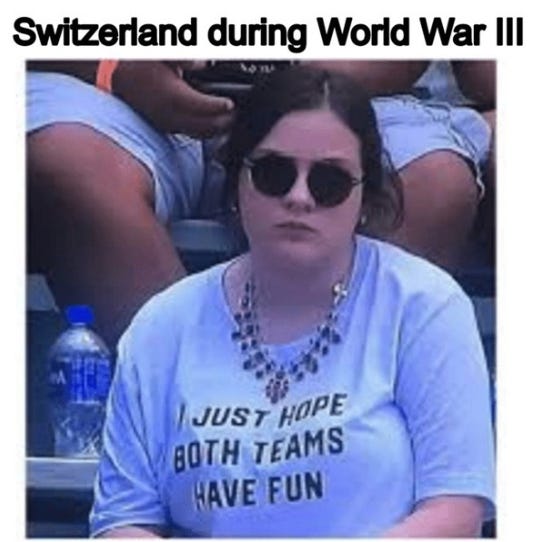 For those unfamiliar with its origins, the WHO was created by the UN during World War II with the goal of establishing complete planetary control… a one world government… a “global body to coordinate international health efforts.” The decision-making arm of the WHO is the World Health Assembly (WHA), which is comprised of representatives from all 194 member states, including the US. The first WHA convened in 1948 in (where else?) Switzerland, which is famously neutral and therefore unlikely to host routine meetings of megalomaniacs hell bent on governing the entire globe’s populace or anything. Thanks for the impartiality, Switzerland!