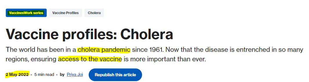 There’s an entire page dedicated to the sixty-three-year-old cholera pandemic in the vomitously titled “VaccinesWork series” on the GAVI website.