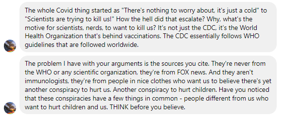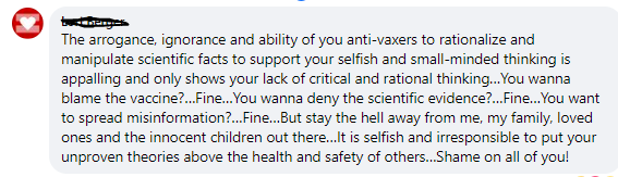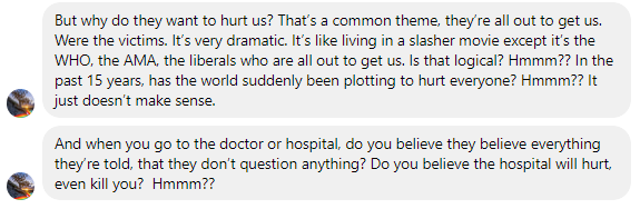 Mind you these were not conversations we were having; at no point did I ask Sarah for her opinions on vaccination. These were her unsolicited reactions to my posts.