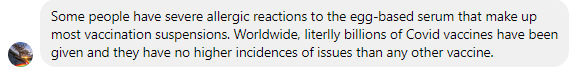 —until she trotted out the egg-based serum theory again and then followed it with a claim that the COVID vaccines “have no higher incidences of issues than any other vaccine [emphasis mine].”