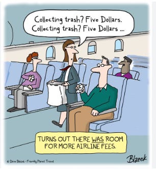 Jenna, Clearly you are a shill for the airlines...how much did they pay you for this piece? It is much, much worse than this in the real world. You did not cover, for example, the "crew is tired so you will have to sit in the airport for three days" upgrade, or the "we overbooked but you can walk for only $1000 extra" upgrade, or the "the toilets are all broken" upgrade. Shame on you for being so mercenary as to withhold these important fees.