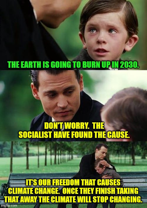 I was thinking about you all this week when I read your fearless captain complaining that the proletariat isn’t net-zeroing fast enough. It’s now or never, right? And while the rest of us sit around selfishly emitting carbon dioxide and racing our shameful gas guzzlers over to Costco for another mega-pack of ribeyes, you and your cronies have mapped out a simple, doable plan to achieve peace and prosperity for people and the planet™, in the next half decade, no less!